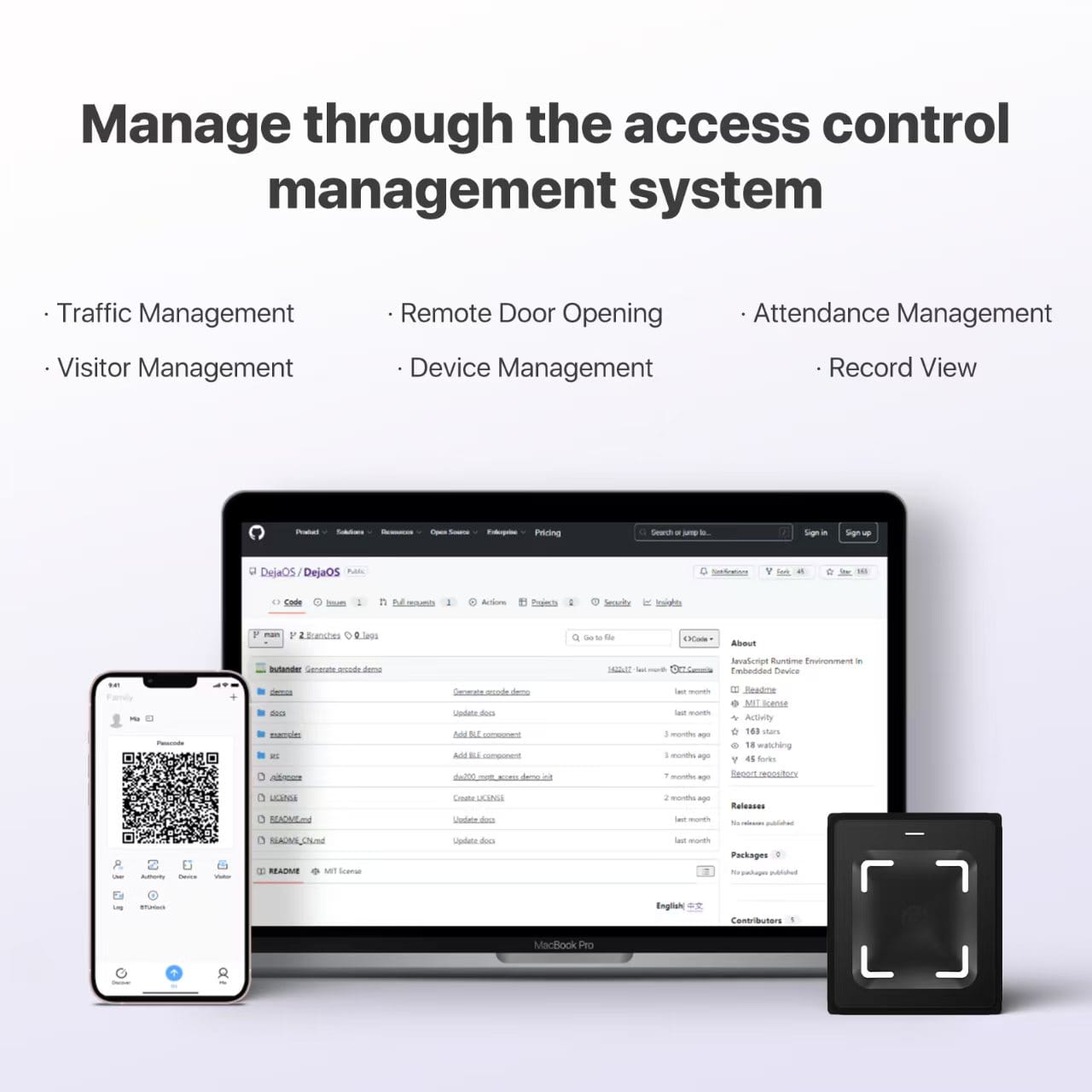 Products and services including graphic algorithms with independent intellectual property rights, integrated management platform software, access controllers, multi-functional access control machines, smart door locks, face recognition devices, and QR code devices.
